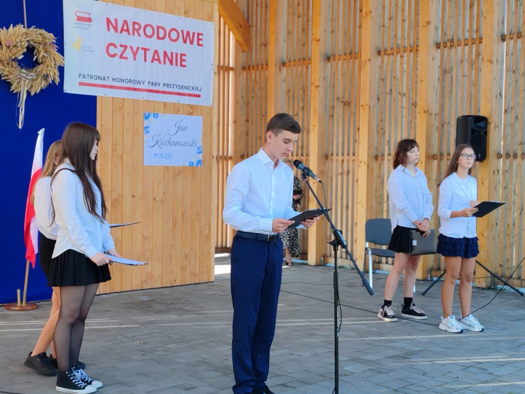 Naszą szkołę w tegorocznej edycji Narodowego Czytania godnie reprezentowali uczniowie klasy VIII. Z ogromnym zaangażowaniem przybliżyli publiczności twórczość Jana Kochanowskiego – jednego z najwybitniejszych twórców polskiego renesansu.