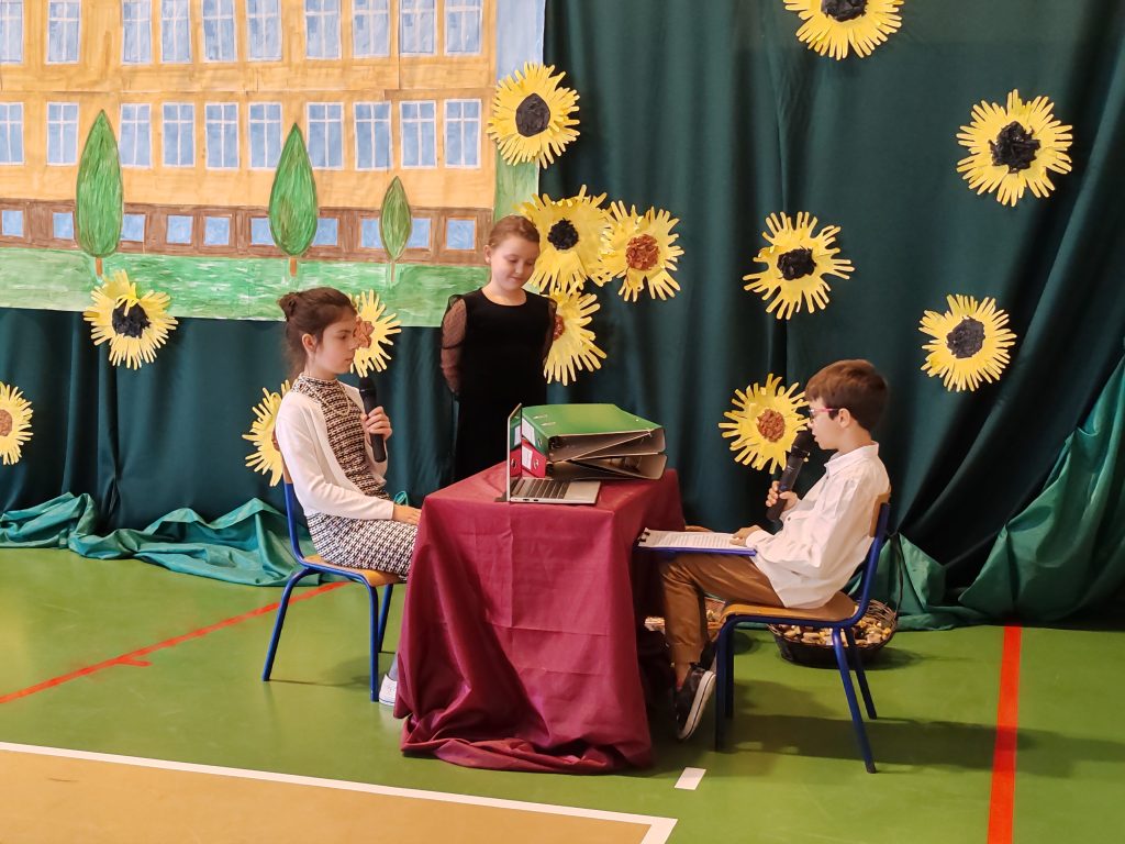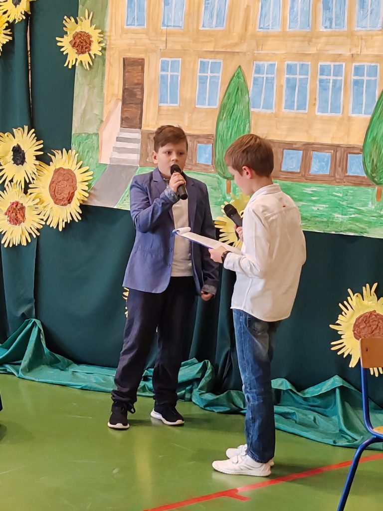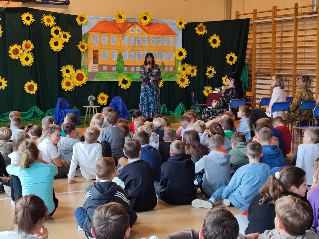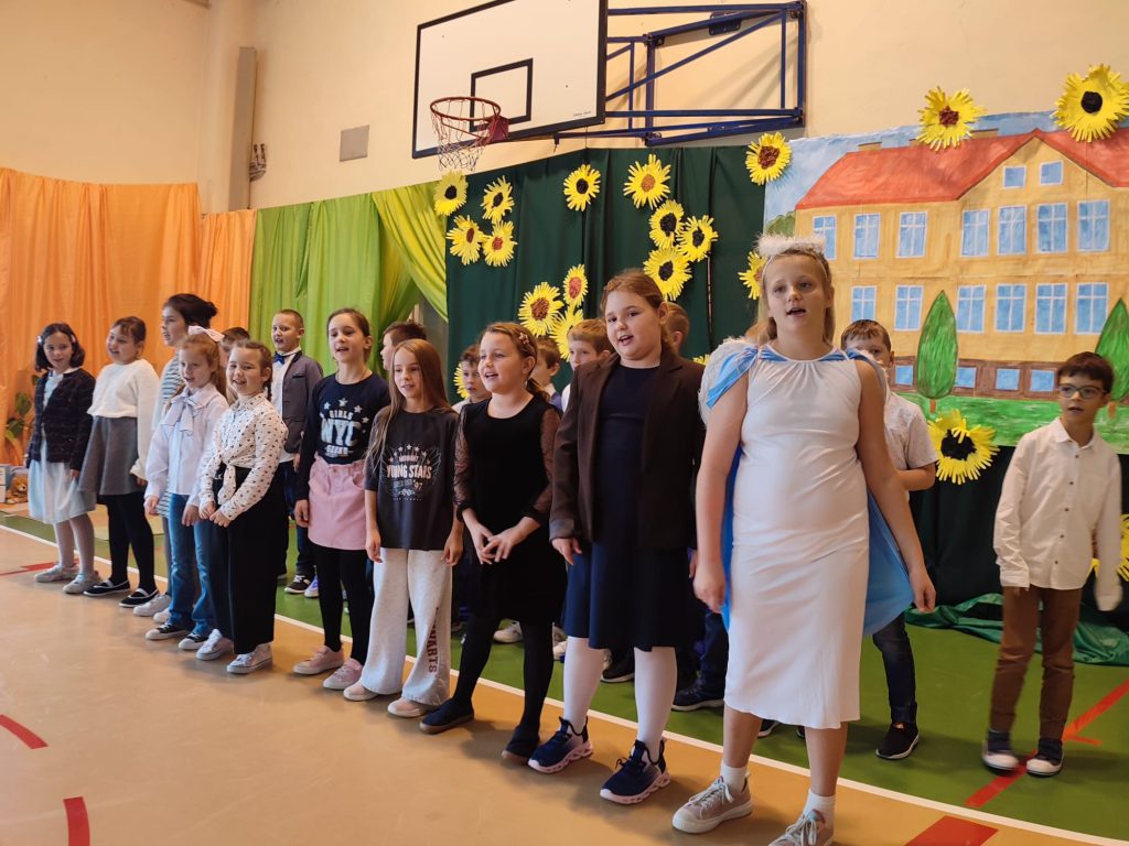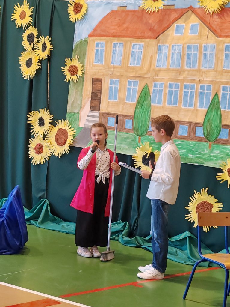 Uczniowie przygotowali wesołe i refleksyjne przedstawienie o relacjach w szkole — o tym, jak ważne są zrozumienie, życzliwość i współpraca między uczniami, nauczycielami i wszystkimi, którzy tworzą szkolną społeczność.