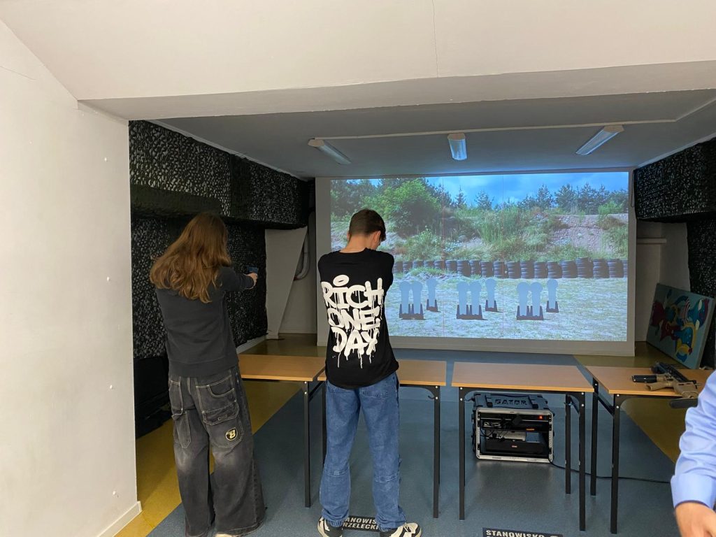 Uczniowie naszej szkoły mieli okazję odwiedzić wirtualną strzelnicę w Zespole Szkół im. Władysława Szybińskiego w Cieszynie. Po krótkim szkoleniu teoretycznym przyszła pora na część praktyczną – każdy mógł spróbować swoich sił w strzelaniu z karabinu i broni krótkiej w bezpiecznych, wirtualnych warunkach.