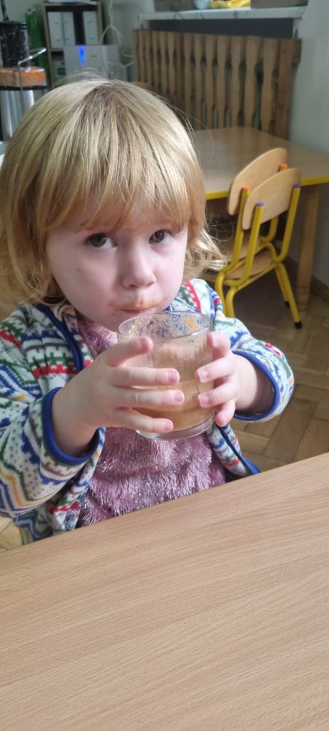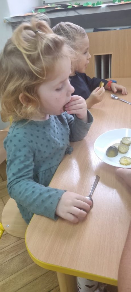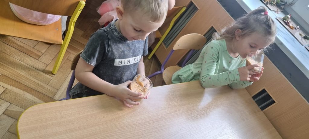 Nie zabrakło też degustacji – dzieci smakowały kapustę kiszoną, dżemy i soki, ucząc się, że zdrowe jedzenie może być naprawdę smaczne!